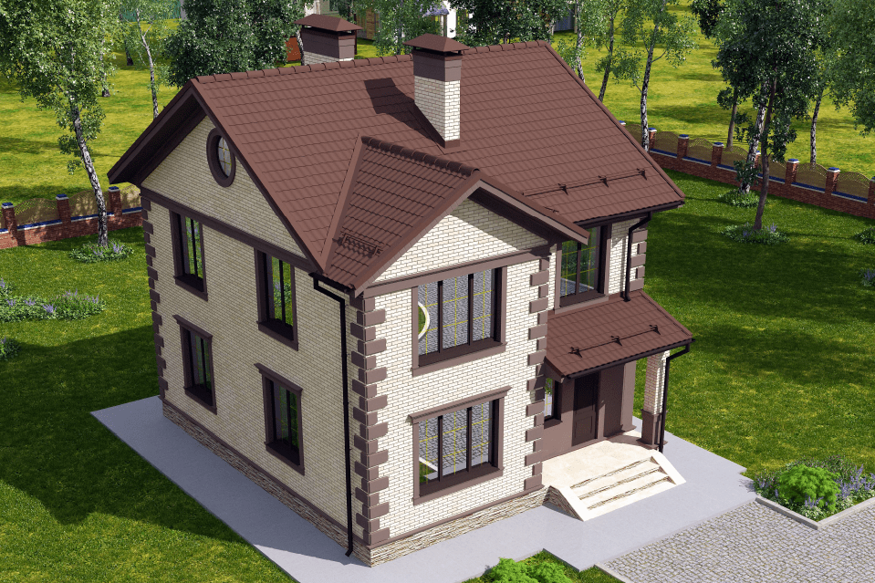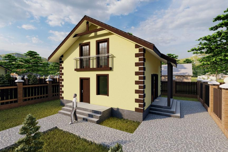 Дом в классическом стиле в современном исполнении. Удобным дополнением служат: крыльцо, терраса с выходом на боковую часть двора и небольшой балкон, с выходом из спальни и коридора на втором этаже. По проекту предусмотрена большая гостиная, отдельная кухня и 3 спальни. При необходимости можно заменить изменить проект и в доме разместить котельную. Большое количество окон делают дом светлым и уютным. Дом возводится из газоблока на капитальном фундаменте. Варианты отделки позволяют вписать дом в ландшафтный и общий дизайн участка, места постройки дома. Строительство дома 60-90 дней.