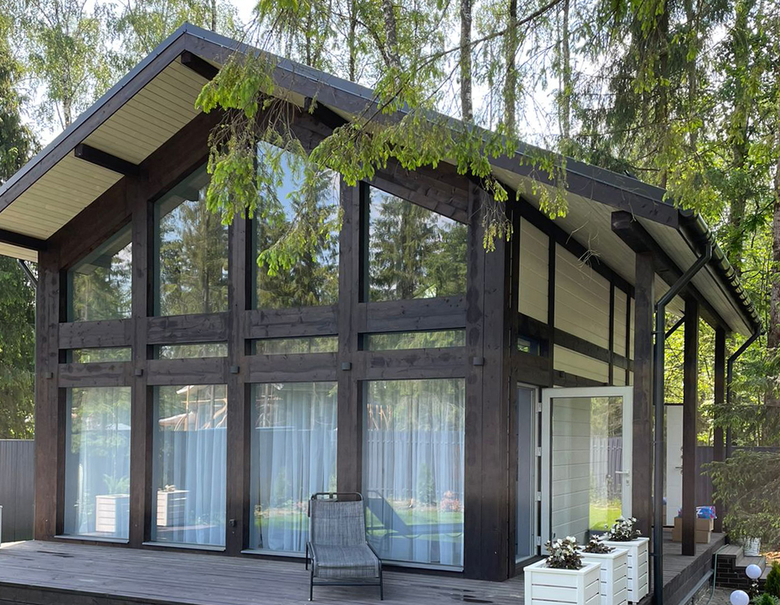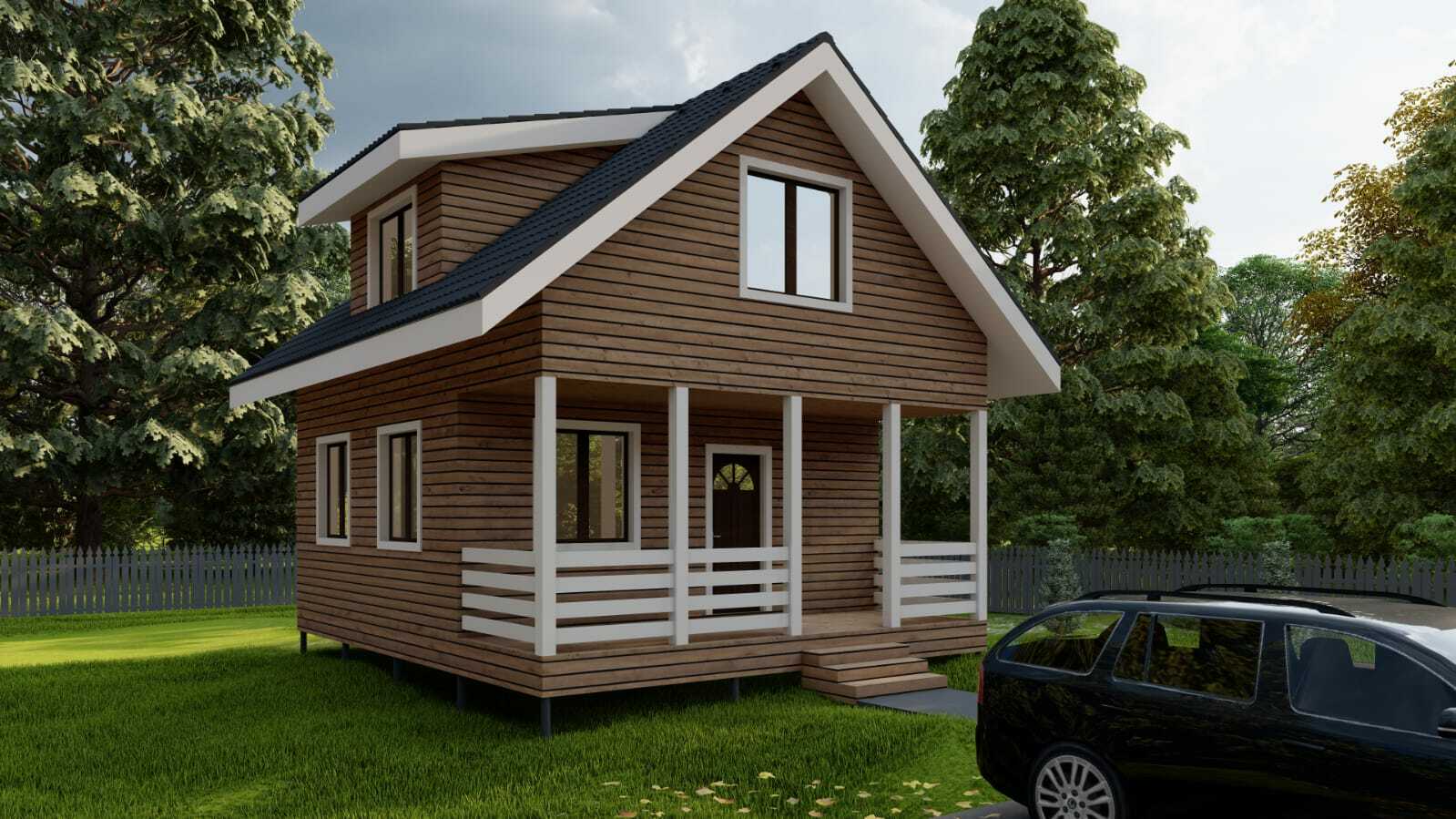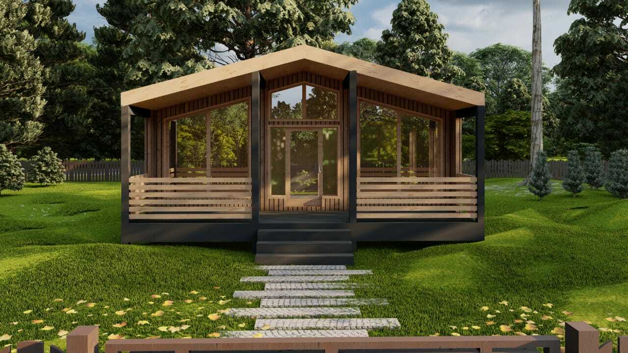 Дом по каркасной технологии в стиле «Барн» с террасой. Габариты дома 9,8х7. Высота потолков 2,9-4 м. Плюс дома – быстрое возведение, современные технологии и материалы. Большие окна и их количество обеспечивают комфорт и уютную атмосферу внутри дома. Данный дом подходит для демисезонного дачного отдыха или круглогодичного проживания. Он соответствует всем нормам и стандартам ИЖС. Варианты отделки позволяют вписать дом в ландшафт участка. Если у Вас предусмотрена газификация дома, в проект можно добавить котельную. Строительство дома 30-50 дней.
