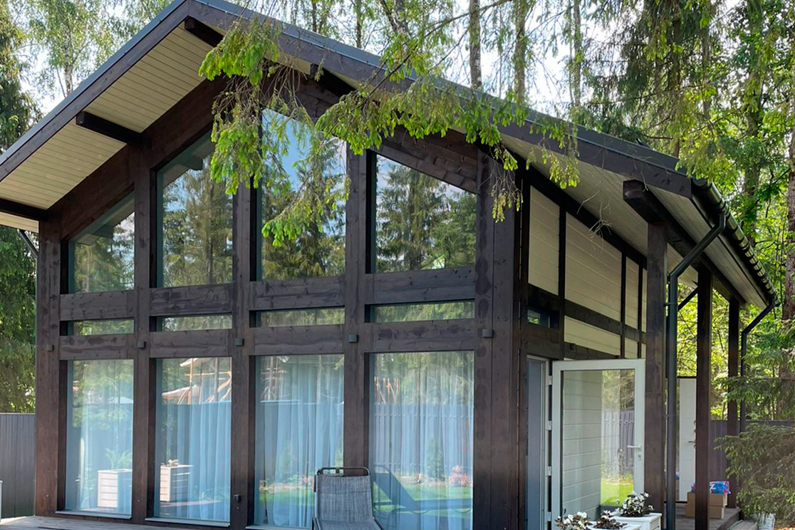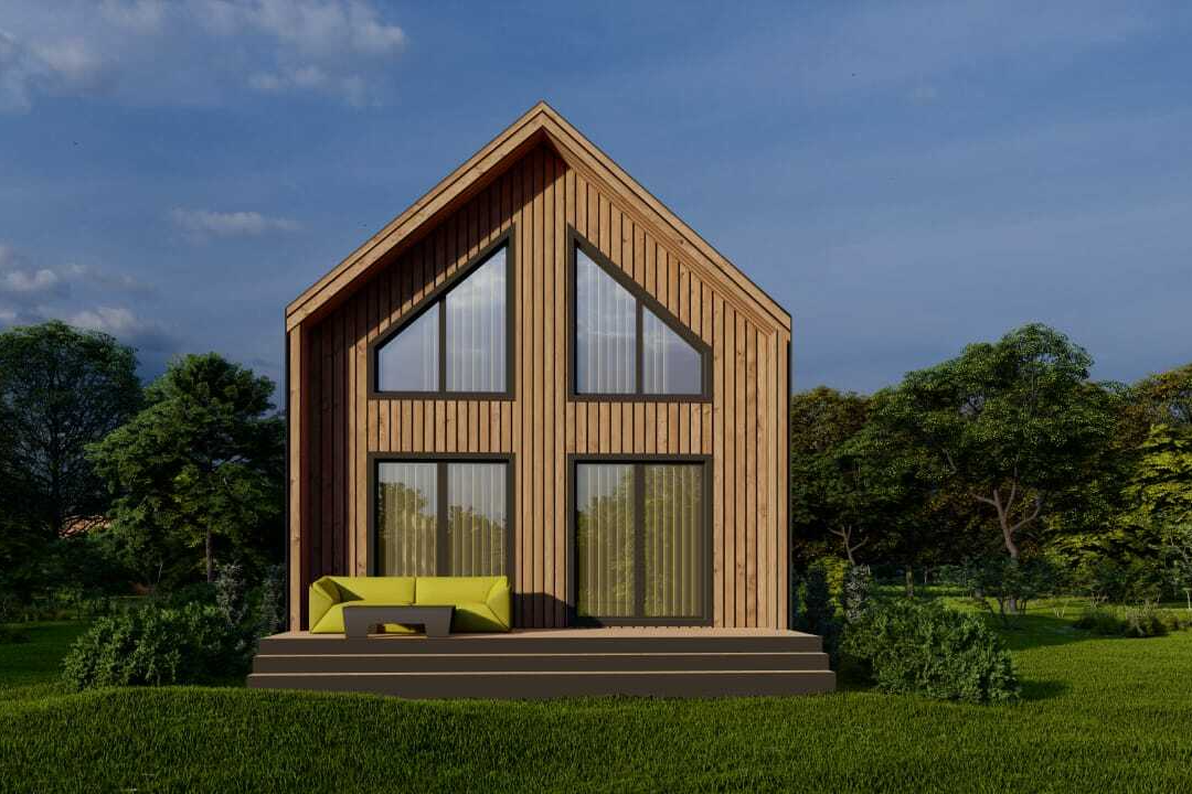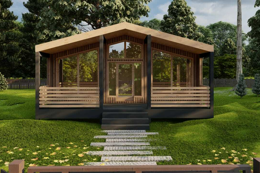 Дом по каркасной технологии в современном стиле. Данный дом подходит для круглогодичного проживания, соответствует всем нормам и стандартам ИЖС. Большая кухня-гостиная, котельная, спальня, санузел на первом этаже. 2 спальни и санузел на втором этаже. Панорамное остекление делает дом светлым и уютным. Котельная заложена в проекте в размере, подходящем для отопления дома газом. Варианты отделки позволяют вписать дом в ландшафтный и общий дизайн участка, места постройки дома. Планировку можно менять, об этом подробно расскажет специалист перед оформлением договора. Строительство дома 45-60 дней.